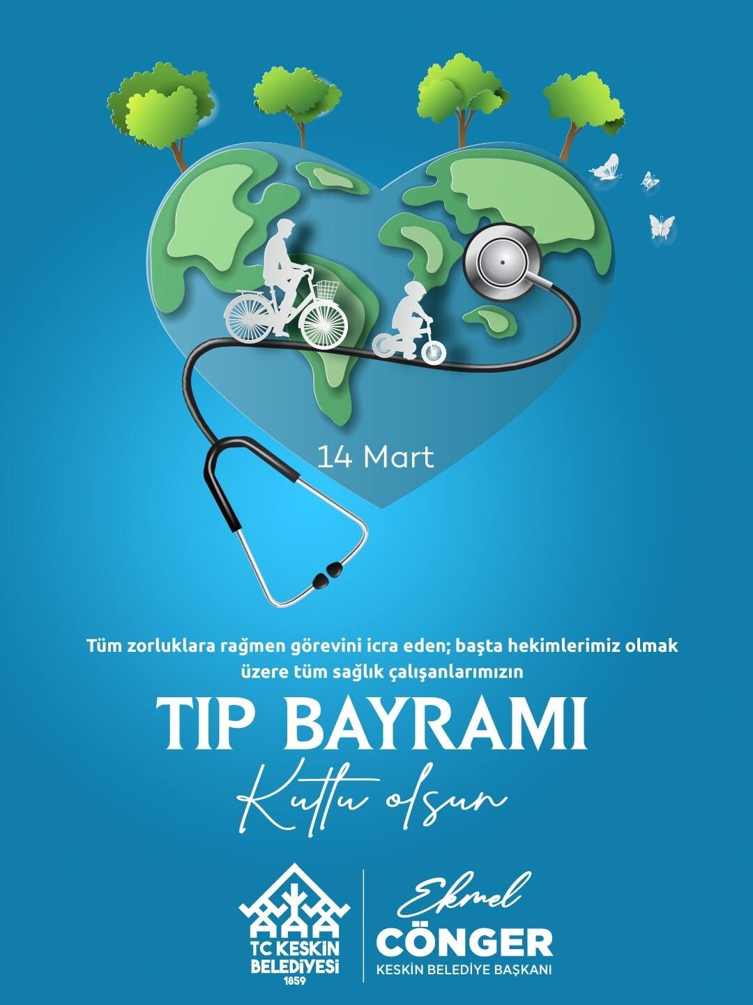 Ekmel Cönger mesajında, tüm hekimlerin ve sağlık çalışanlarının 14 Mart Tıp Bayramı’nı kutlayarak, sağlıklı, huzurlu ve başarılı bir çalışma hayatı temennisinde bulundu.