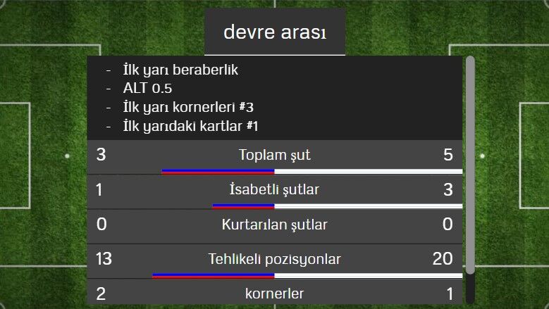 İstatistiklere göre ilk yarıda Niğde Belediyespor’un daha fazla şut çektiği ve daha çok tehlikeli pozisyon bulduğu görülürken, Kırıkkale FK’nın ikinci yarıda oyunun kontrolünü ele alması gerektiği değerlendiriliyor.