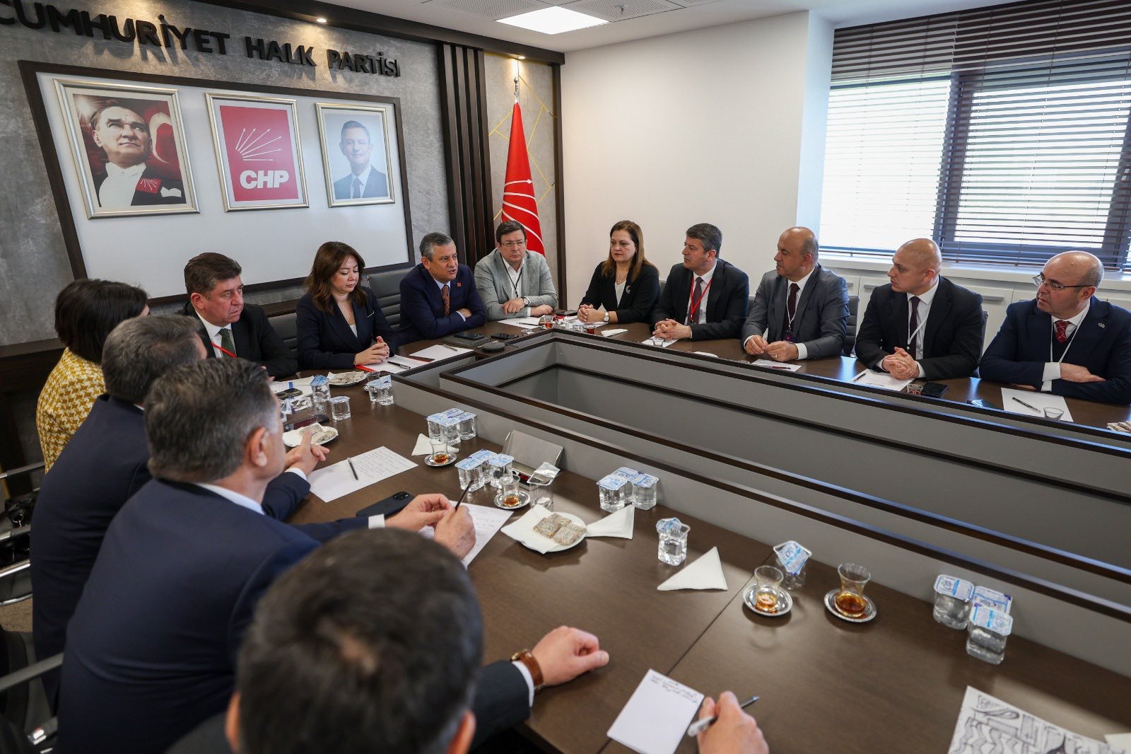 CHP Genel Başkanı Özgür Özel liderliğinde gerçekleştirilen toplantıda, yerel yönetimlerde iş birliğinin güçlendirilmesi, ortak akıl anlayışının yaygınlaştırılması ve dayanışma kültürünün artırılması konuları ele alındı.