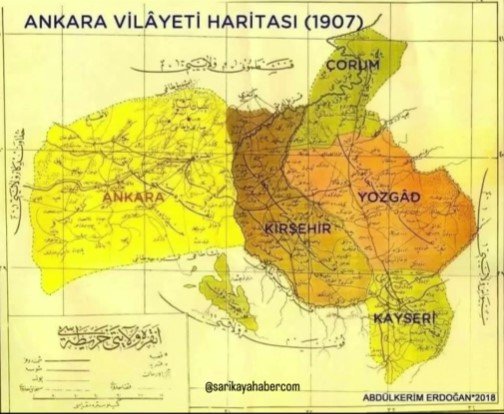 Osmanlı Devleti’nin son dönemlerine ait bu belgede, Ankara, Kırşehir, Yozgat, Çorum ve Kayseri gibi bölgelerin aynı vilayet düzeni içinde yer aldığı görülürken, Kırıkkale’nin henüz il statüsüne sahip olmadığı anlaşılıyor. Bu durum, bölgenin uzun yıllar boyunca Ankara’ya bağlı bir yerleşim olarak yönetildiğini ortaya koyuyor.