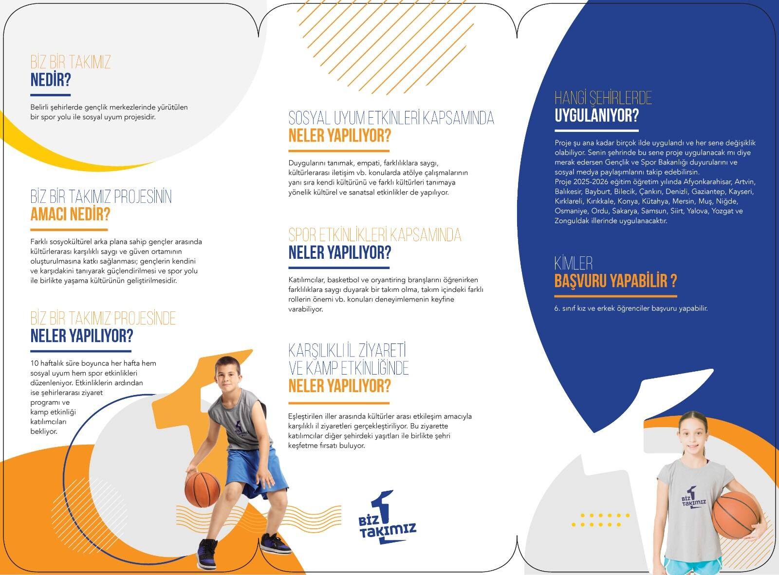 Proje kapsamında gençler; spor faaliyetleri, sosyal uyum atölyeleri ve kültürel etkinliklerle bir araya gelecek. Basketbol ve oryantiring branşlarında eğitim alacak öğrenciler, takım ruhu, iş birliği ve birlikte hareket etme kültürünü yaşayarak öğrenme fırsatı yakalayacak.
