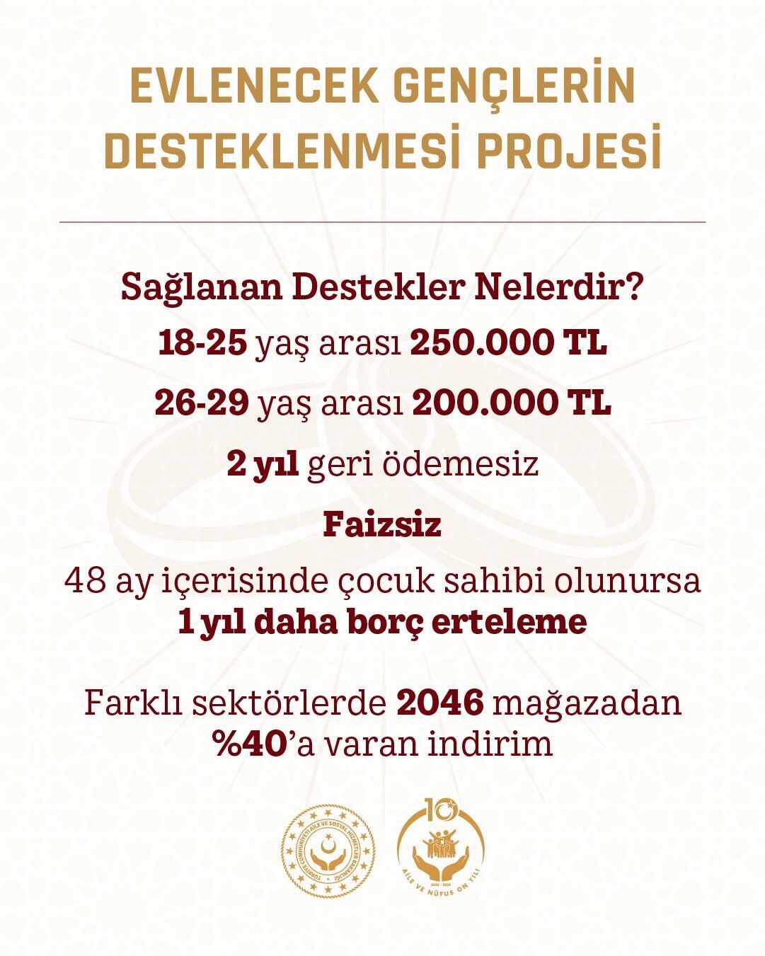 Yetkililer, söz konusu desteklerin gençlerin daha sağlam temeller üzerine aile kurmasına katkı sağlayacağını belirtirken, başvuruların ailegenclikfonu.aile.gov.tr adresi üzerinden yapılabildiğini ifade etti.