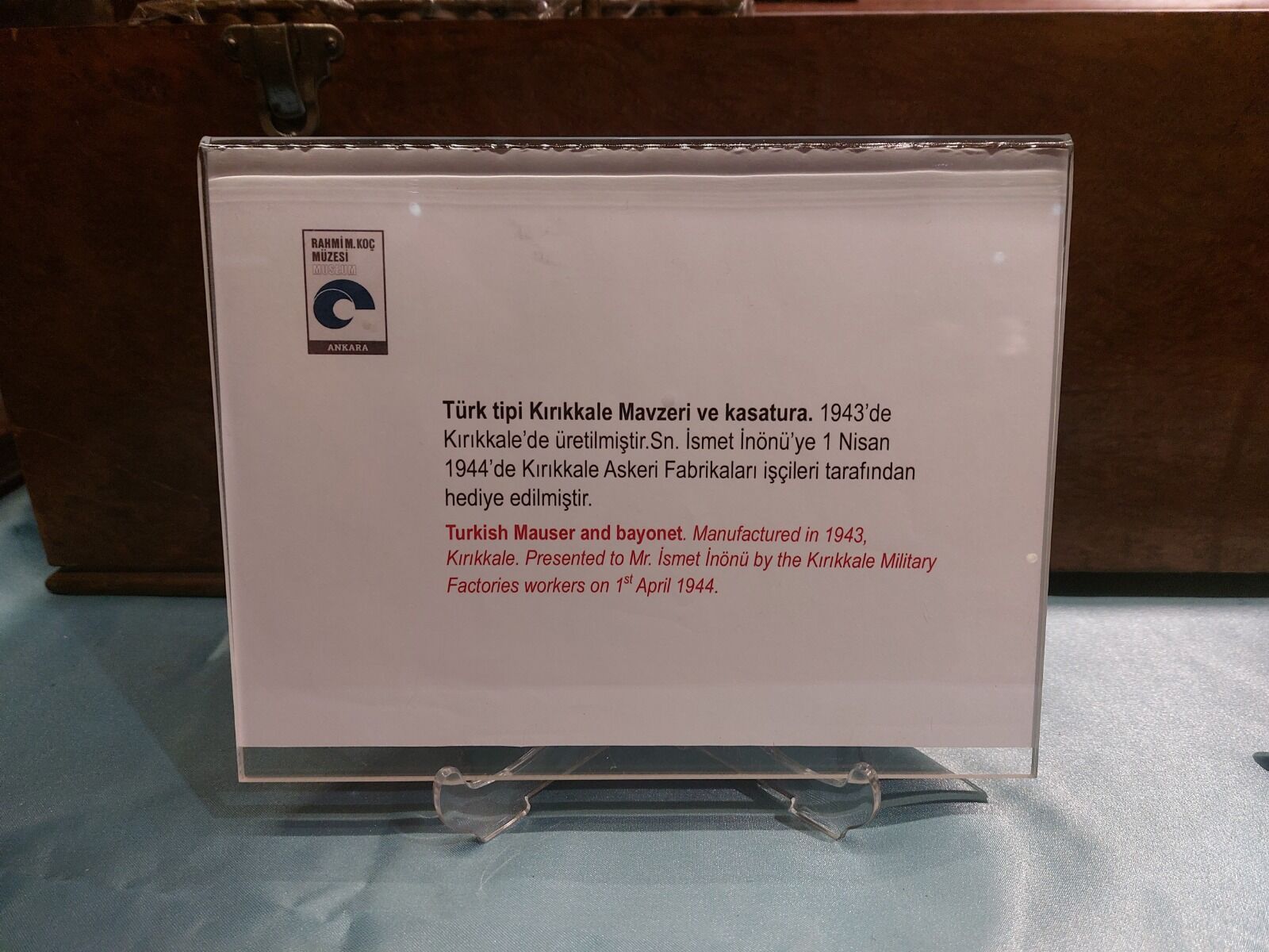 Müze kayıtlarına göre, Türk tipi Kırıkkale mavzeri ve kasatura 1943 yılında Kırıkkale’de üretildi. Bu özel üretim, 1 Nisan 1944 tarihinde Kırıkkale Askeri Fabrikaları’nda çalışan işçiler tarafından dönemin Cumhurbaşkanı İsmet İnönü’ye hediye edildi. Emekle hazırlanan bu armağan, Kırıkkale’nin savunma sanayisindeki rolünü ve işçi emeğinin değerini simgeleyen önemli bir tarihî belge olarak öne çıkıyor.