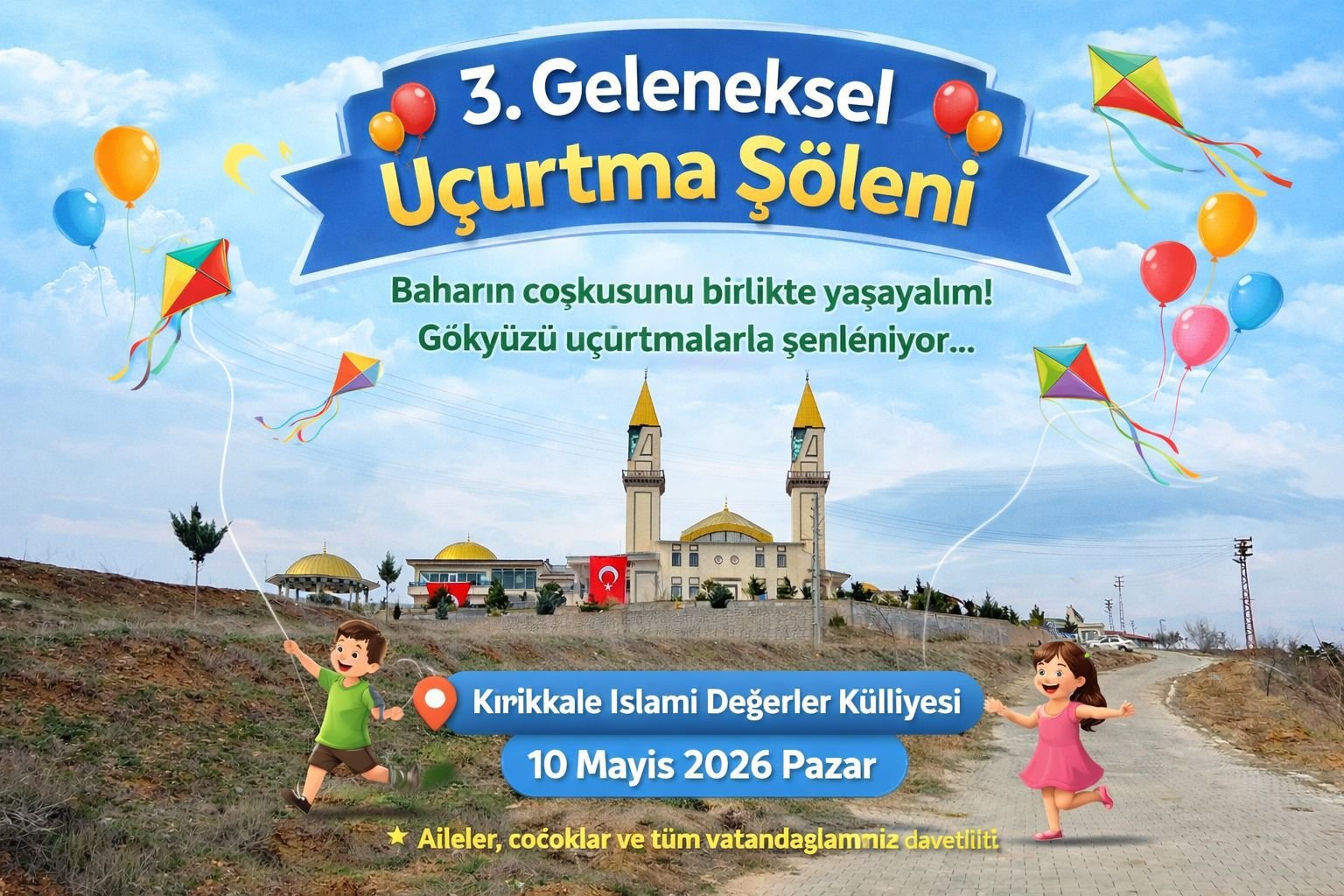 Kırıkkale’de geleneksel hale gelen Hıdırellez ve Uçurtma Şöleni için geri sayım başladı. Kırıkkale İslami Değerler Külliyesi tarafından bu yıl üçüncüsü düzenlenecek etkinlik, 10 Mayıs 2026 Pazar günü gerçekleştirilecek.