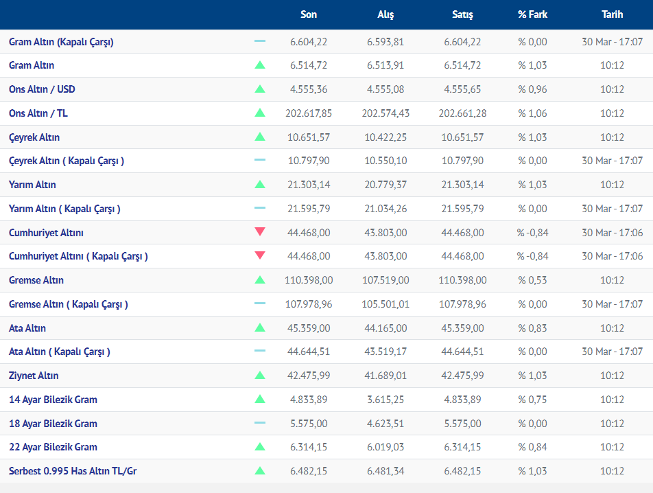 Gram altın yeni güne yükselişle başladı. Güne yükselişle başlayan gram altının bugünkü (31.03.2026) fiyatı, Kırıkkale Kuyumcular Derneğinin verilerine göre, gram altın 6514 liradan işlem görüyor.
