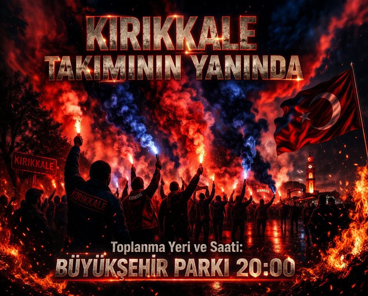 Yapılan açıklamaya göre taraftarlar, maç öncesinde saat 20.00’de Büyükşehir Parkı’nda (Mehmetçik Heykeli önü) buluşacak. Burada toplanacak olan taraftarların, hep birlikte stadyuma geçerek Kırıkkale FK’ya destek vereceği belirtildi.