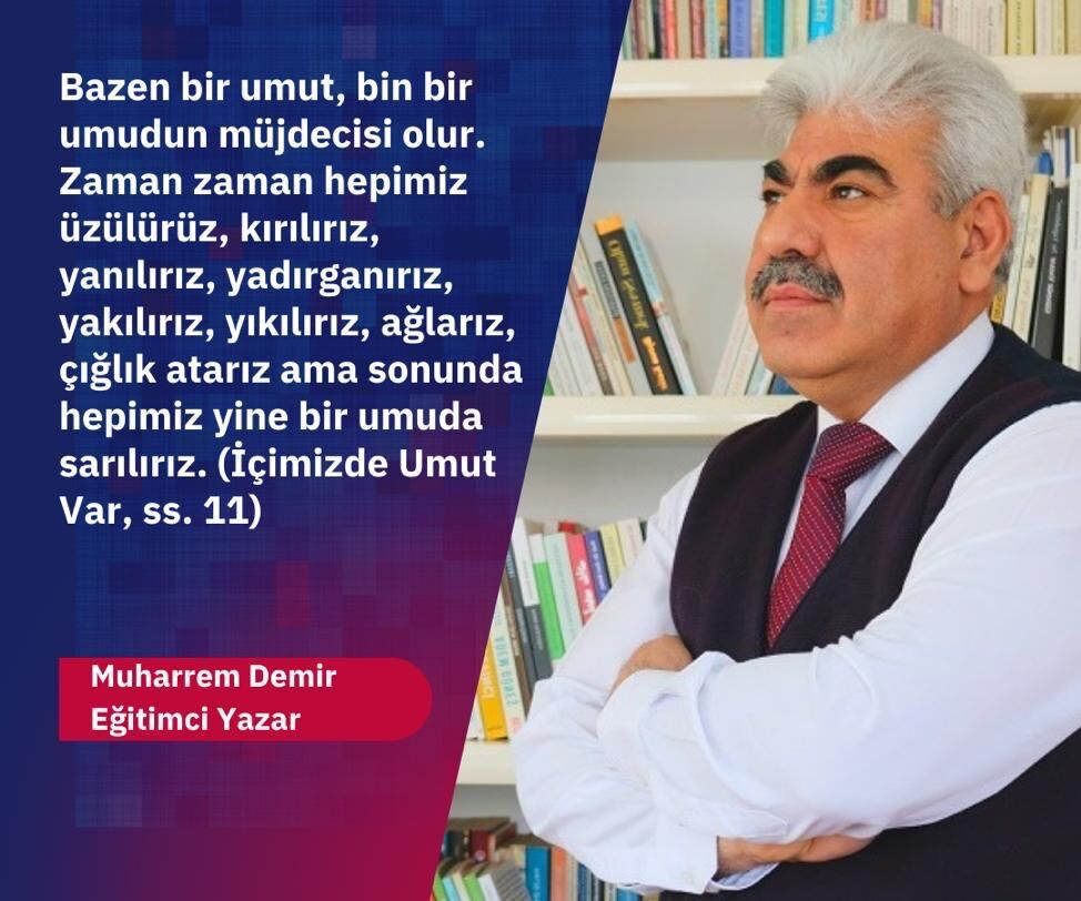 Eğitimci-yazar Muharrem Demir, umut, irade ve insanın dayanma gücü üzerine yaptığı çalışmalarla dikkat çekmeye devam ediyor. Yazdığı kitaplar ve yaptığı değerlendirmelerle özellikle psikoloji, eğitim ve insan davranışları üzerine farklı bir bakış açısı ortaya koyan Demir, umut kavramının yalnızca bir teselli değil, insanı ayakta tutan önemli bir iç güç olduğunu vurguluyor.