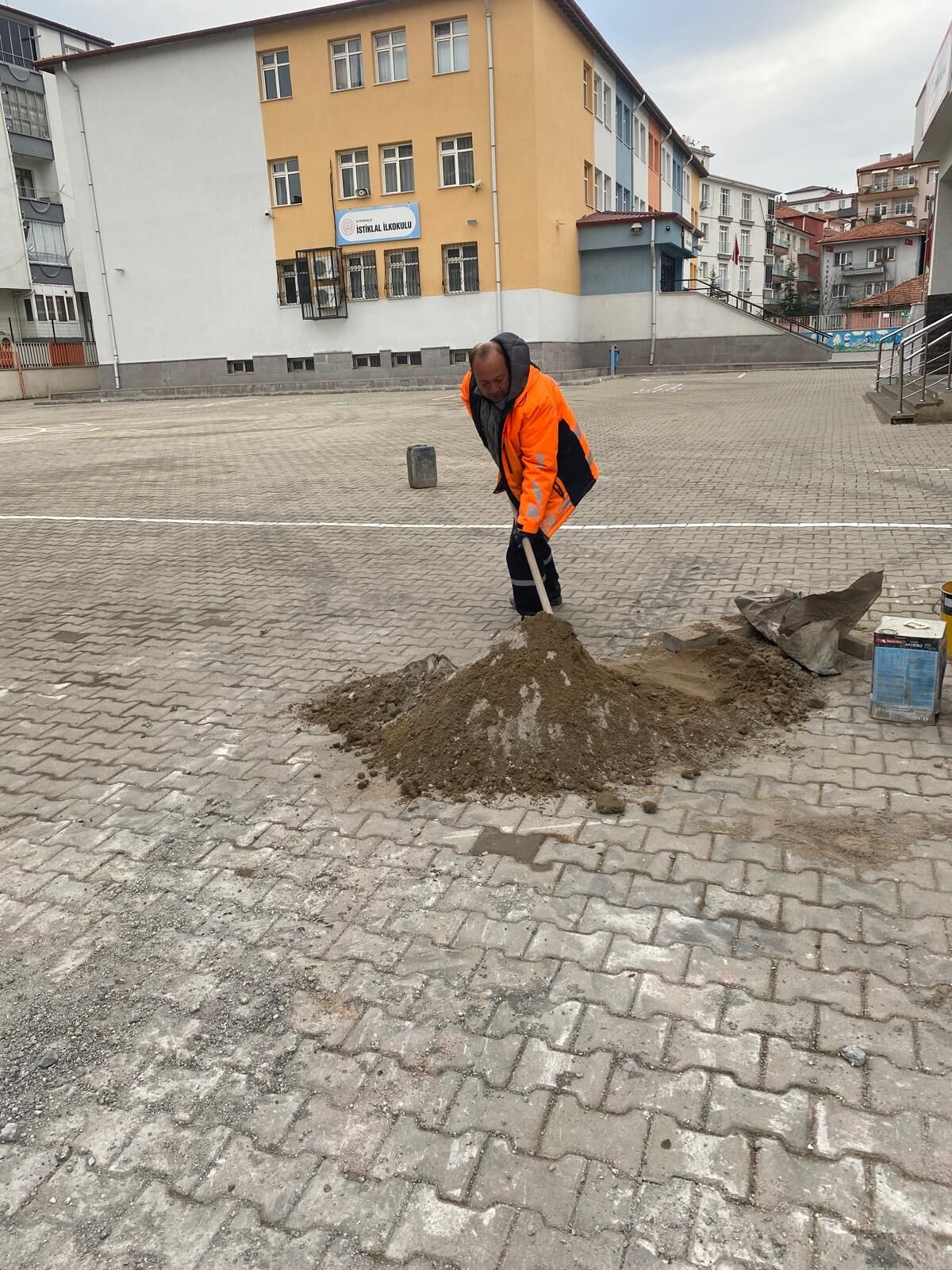 Okul yönetiminin talebi üzerine yürütülen çalışmalarda, bahçe içerisine yeni kilit parke taşları döşenerek öğrenciler için daha güvenli, düzenli ve estetik bir zemin oluşturuldu.