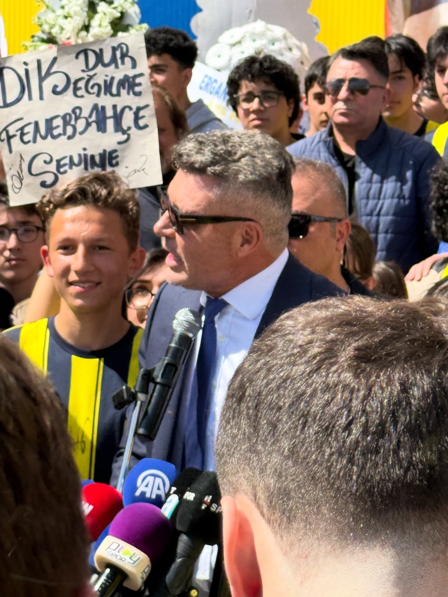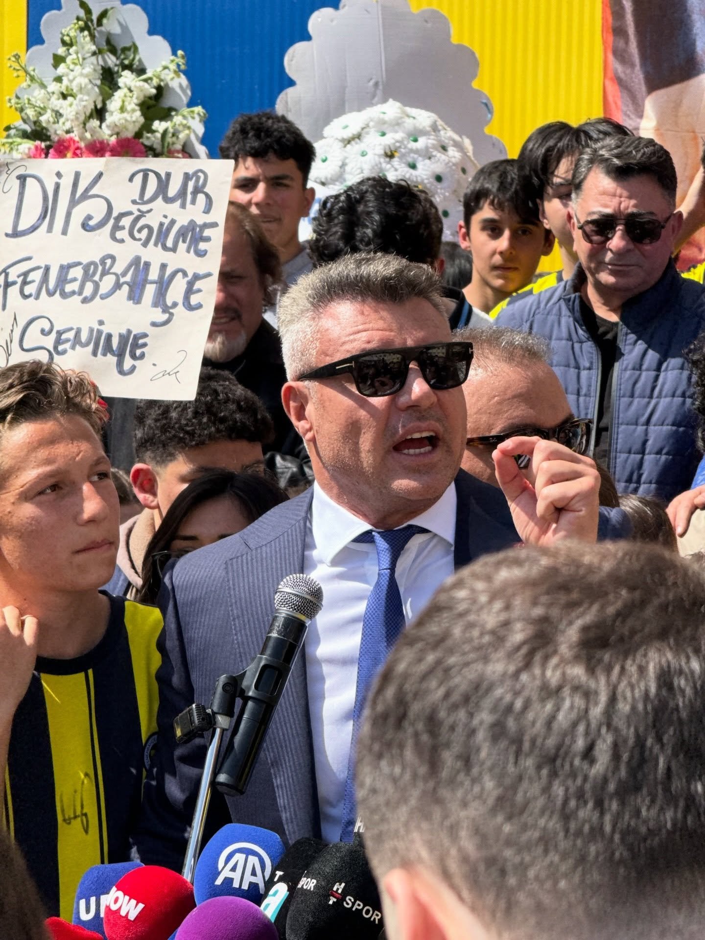 Konuşması sırasında kendisine yönelik tezahüratlara da karşılık veren Saran, “Bir dakika, bir dakika GFB. Bak, bir daha almam sizi maçlara. Bir durun, burada çocuklar için buradayız” diyerek gençleri sakin olmaya davet etti.