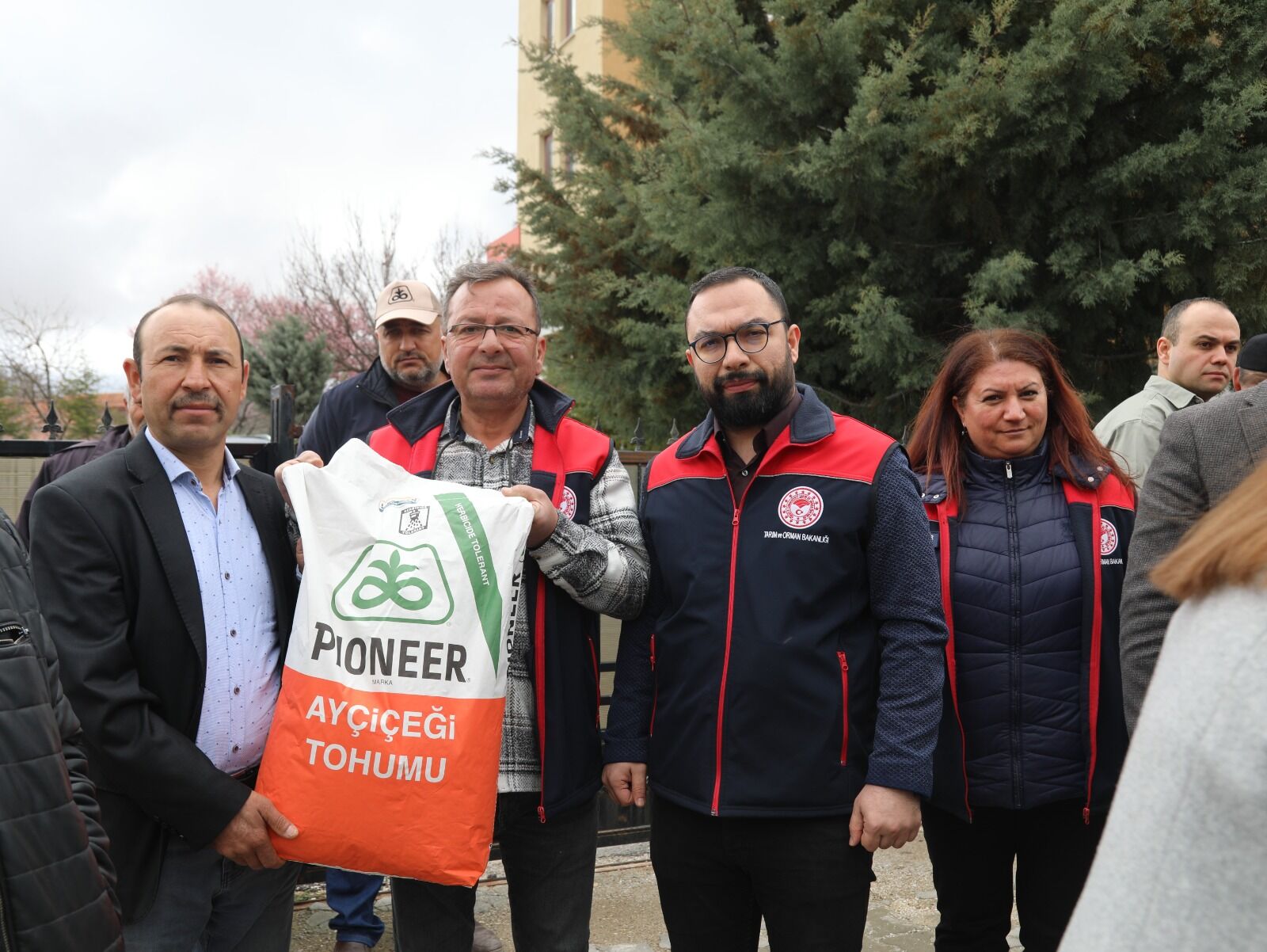 Çelebi’de düzenlenen dağıtım programına Çelebi Kaymakamı Tuğçe Uzunyol, şube müdürleri ve İlçe Tarım Müdürü katıldı. Program kapsamında üreticilere hibrit yağlık ayçiçeği tohumları teslim edildi.
